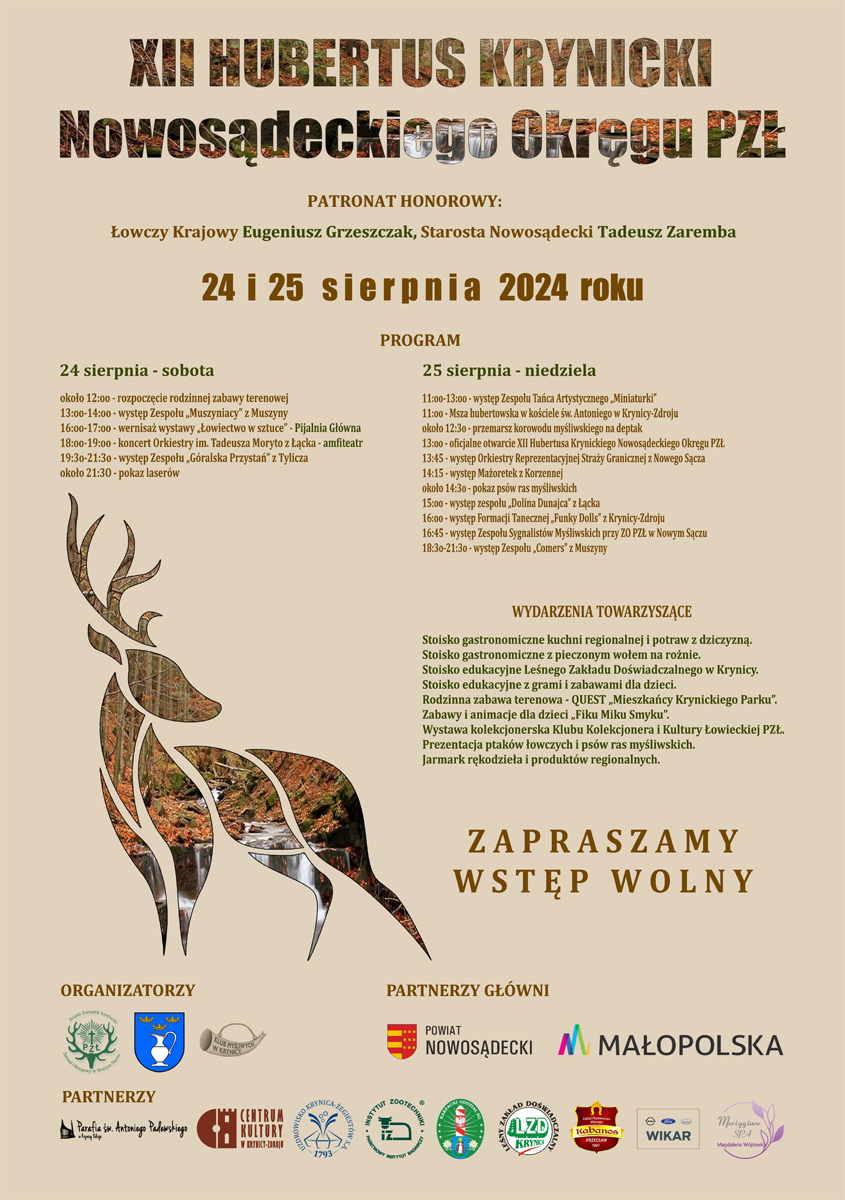 Jako współorganizatorzy XII Hubertusa Krynickiego Nowosądeckiego Okręgu PZŁ zapraszamy na krynicki deptak w dniach
